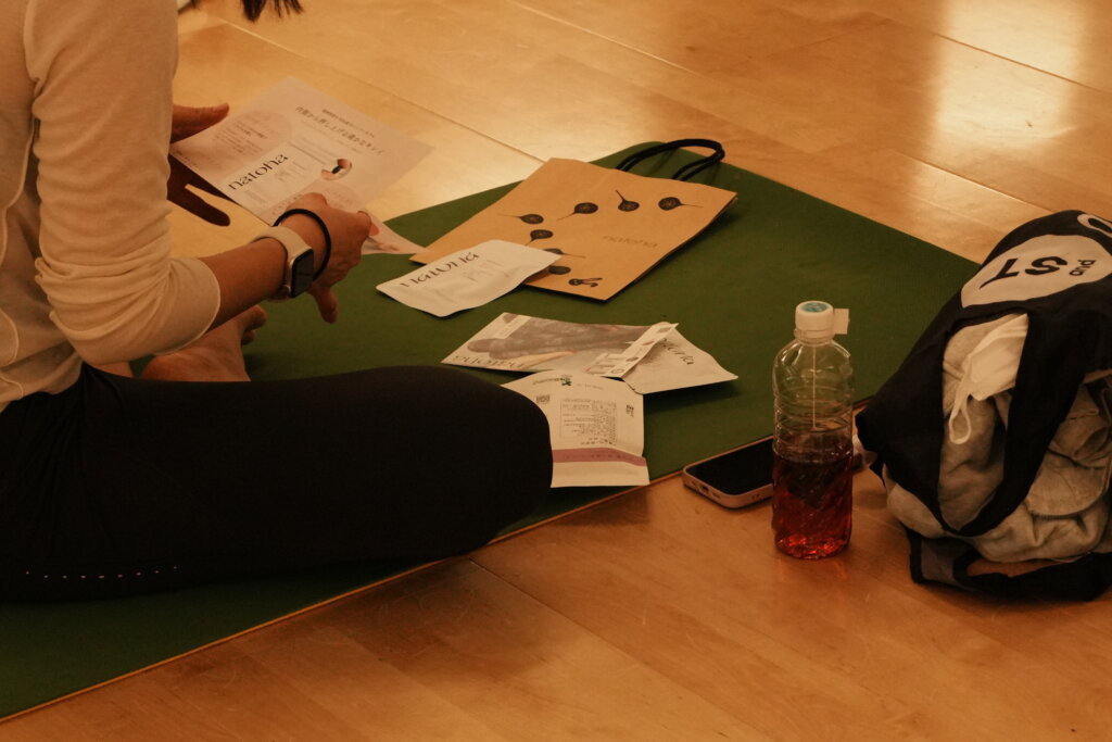ヨガレッスンの後には、natohaのアイテムをお持ち帰りいただきました。